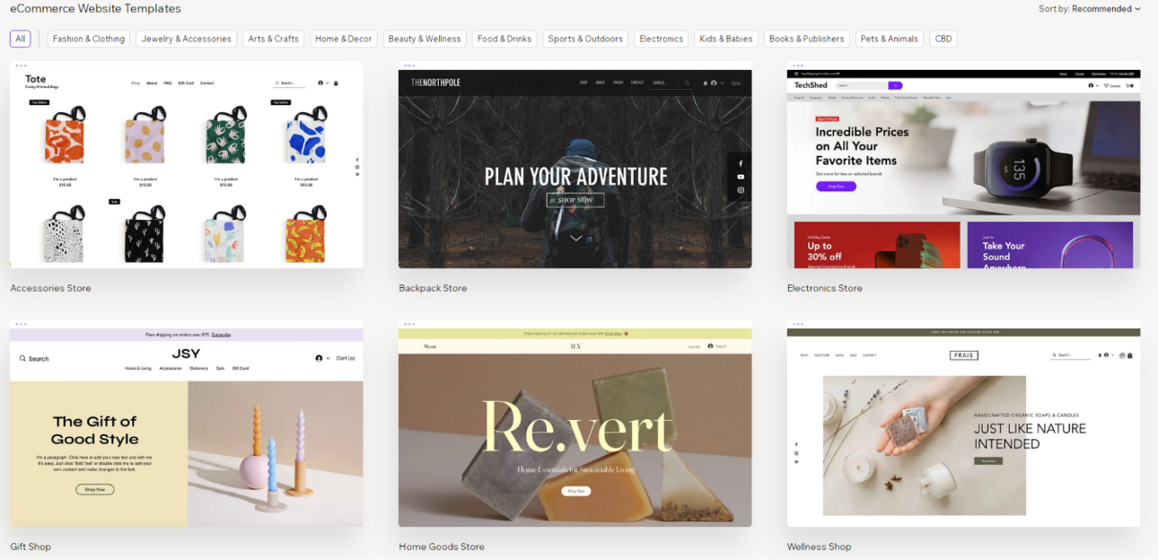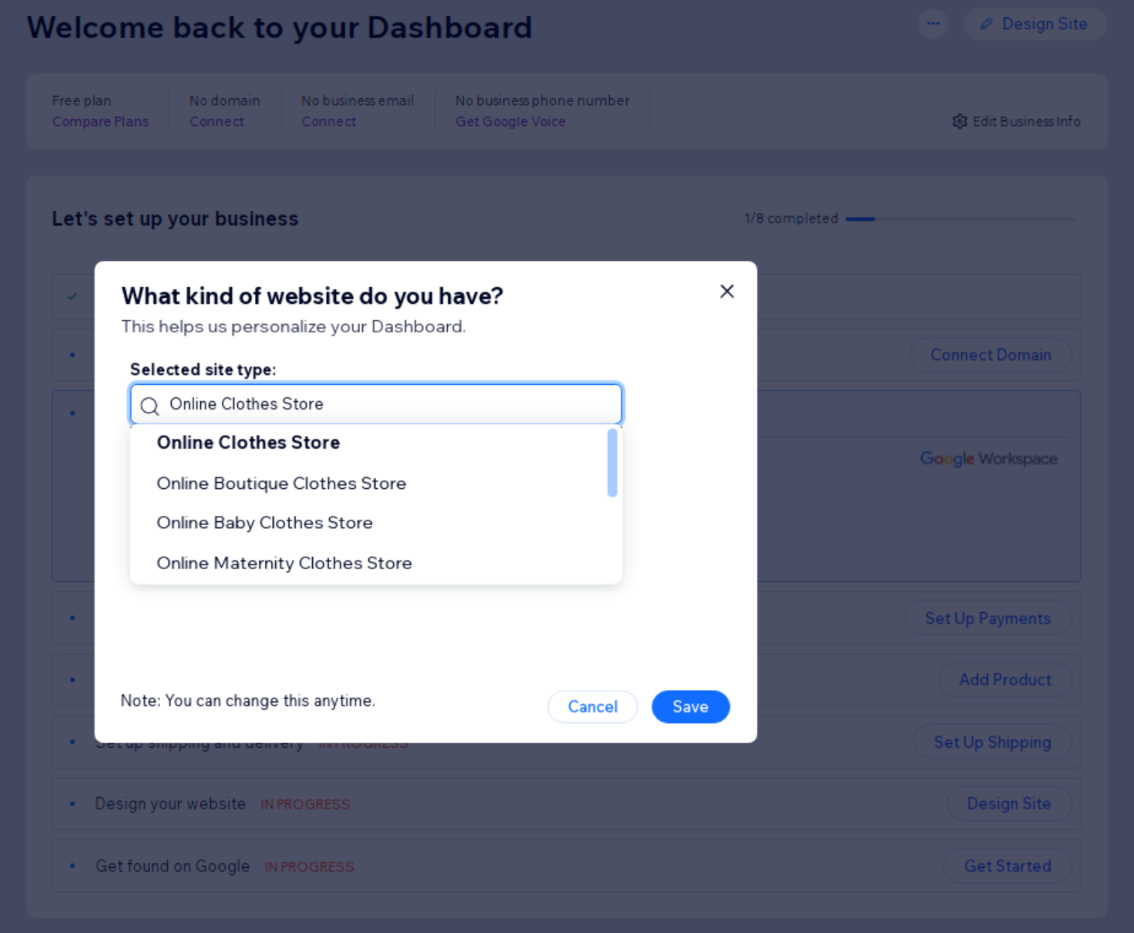 Select the type of website you want to create—such as an online store, fashion boutique, or pet shop. Wix customizes your experience and templates based on your selection.