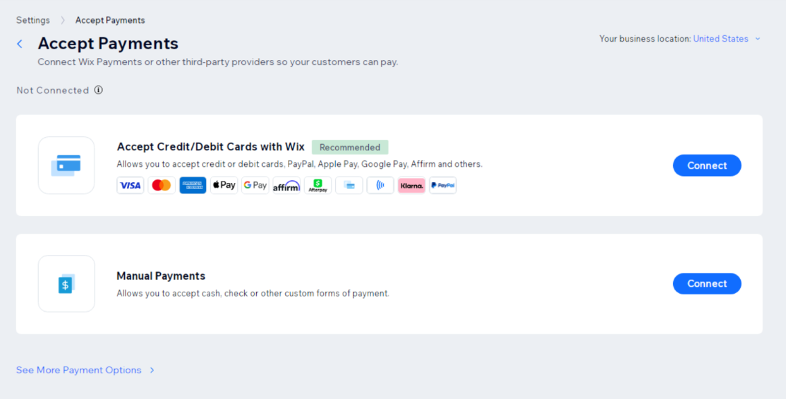 Configure how you'll receive payments. Wix supports multiple payment options such as credit cards, PayPal, and local gateways depending on your region.