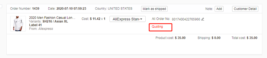 报完价后,您可以看到您的产品成本。点击“Shipping cost”查看可用的运输方式及对应的价格。