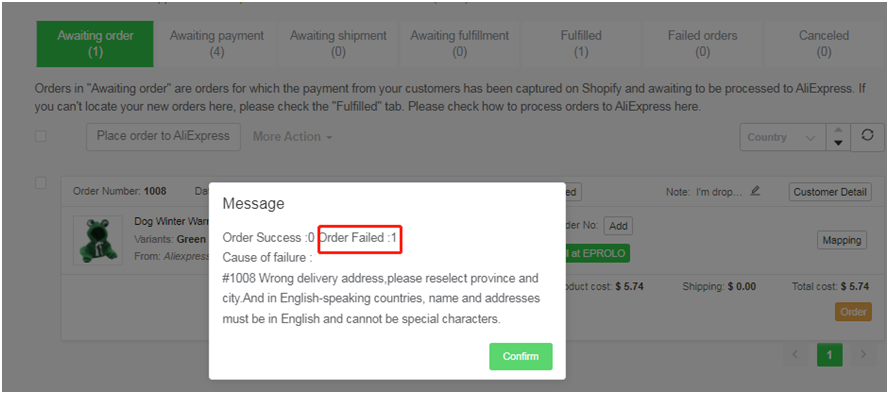 去到“Ali Orders”,您会看到一个弹窗。点击“Confirm”。