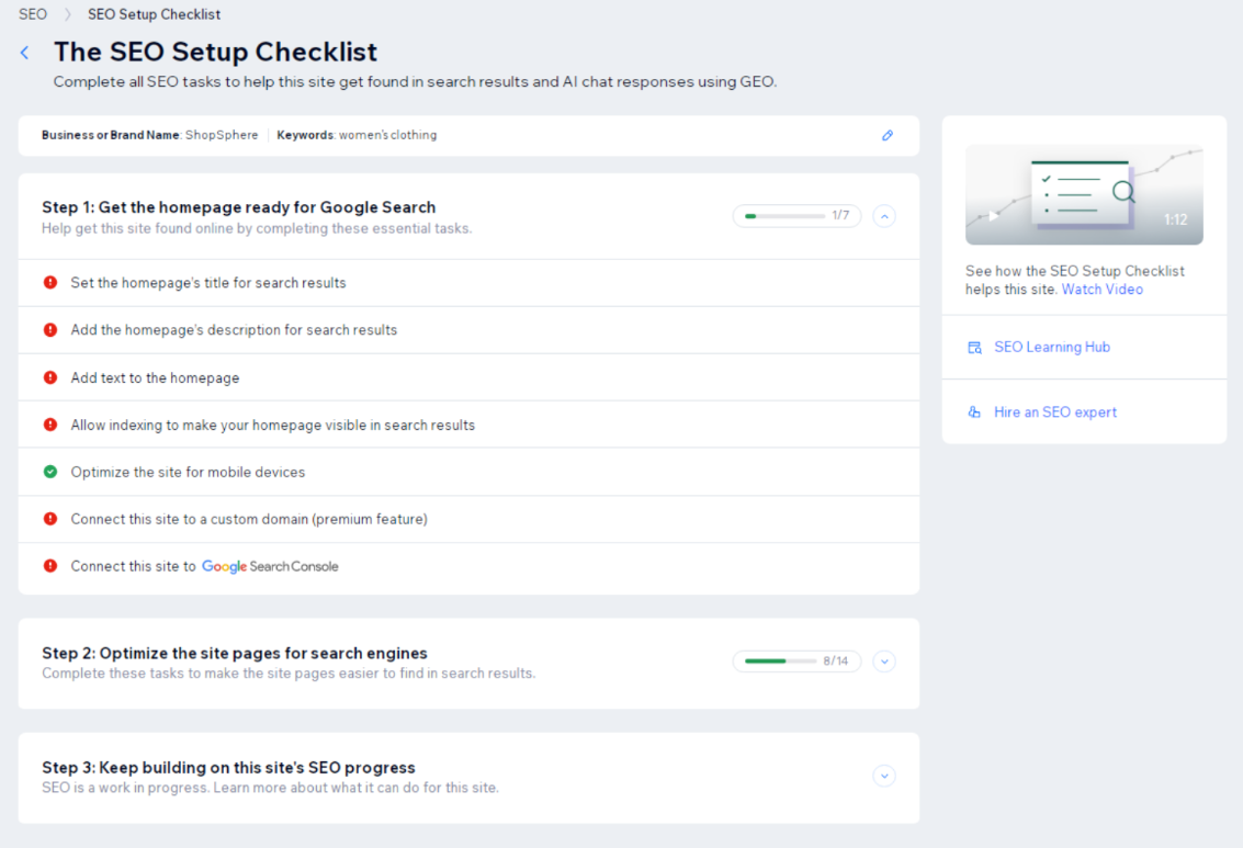 Optimize your site for search engines using Wix's built-in SEO tools. Add keywords, meta titles, and descriptions to help your store appear in Google search results.